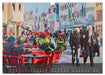Die gegenständlichen Werke umfassen Stadtansichten mit Menschen in Bewegung.