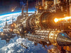 Der retro-futuristische Ansatz von Steampunk verleiht der Fantasie mächtige Flügel. Auf diesen lassen wir uns ins All tragen und bewundern, wie uns die künstliche Intelligenz Szenen aus dem Alltag der erdnahen Raumfahrt erleben lässt, alles natürlich mit Vehikel aus poliertem Messing.