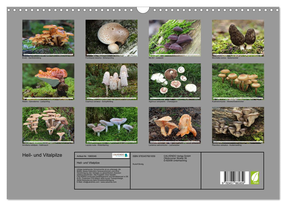 Etliche Pilzarten gelten in der traditionellen fernöstlichen Medizin als Heil- und Vitalpilze. Es gibt sie aber nicht nur dort, sondern auch bei uns in Mitteleuropa. Der Kalender zeigt heimische Heil- und Vitalpilze an den natürlichen Standorten.