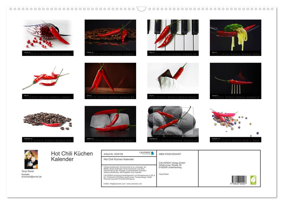 Rote Chili in der Küche brauchen wir fast täglich. Dieser Kalender illustriert tolle Stillleben der Chili in einem Küchenkalender. Ein "must have" für die Küche.