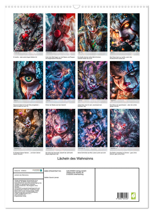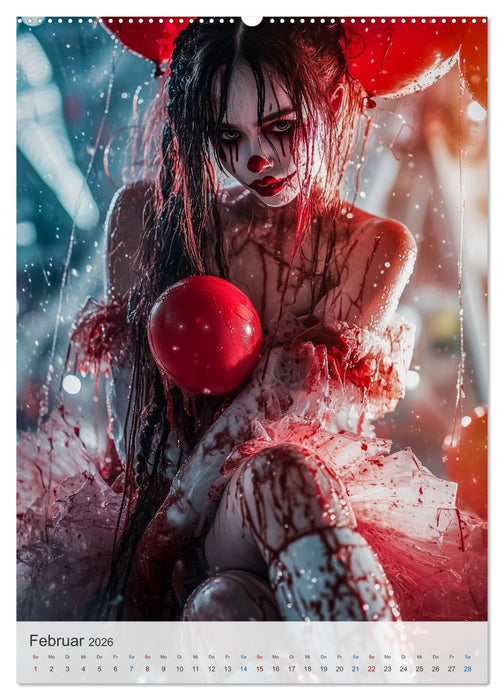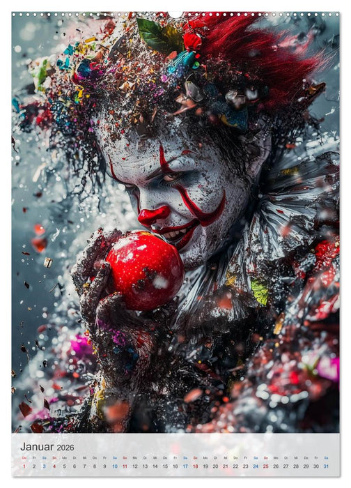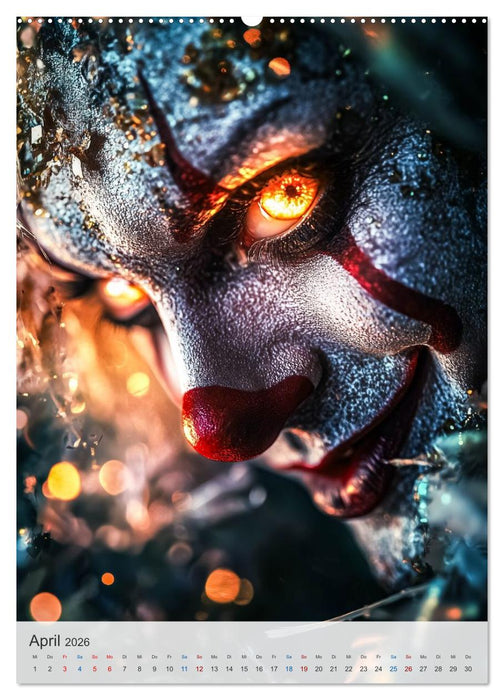 Diese Clowns sind keine Witzfiguren, sondern Kreaturen aus den tiefsten Albträumen. Sie lachen, wenn du schreist. Sie tanzen, wenn du rennst. (Monatskalender, 14 Seiten)