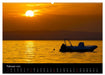 Juni: Blick von Südosten auf den Gardasee mit Fischernetzen und Vögeln.