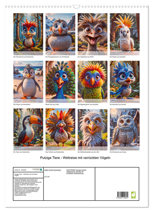 Der Kalender zeigt Monat für Monat süße, verrückte und liebevoll animierte Vögel aus aller Welt, die mit ihren einzigartigen Charakteren für Freude und Schmunzeln sorgen. Perfekt für alle, die Spaß, Farbe und ein bisschen Verrücktheit in ihren Alltag bringen möchten!