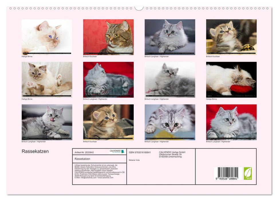 Katzen – so schön und lebendig. In diesem Kalender finden Sie beliebte Rassen, wie die Heilige Birma, Britisch Kurzhaar und Britisch Langhaar, auch Highlander genannt - anmutige und bezaubernde Momentaufnahmen einiger populären Züchtungen. Die Katzen sind anhänglich, menschenbezogen und gemütlich. 13 traumhafte Ansichten der hübschen Stubentiger.
