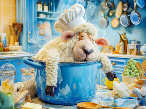 View full detailsSchaf mit Kochmütze schläft im Kochtopf - CALVENDO Foto-Puzzle'