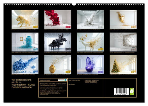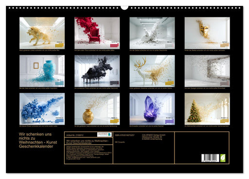 Wir schenken uns nichts - der edle Geschenkkalender. Minimalistisch und künstlerisch zeigt er jeden Monat pompöse Objekte im Auflösen. Perfekt als...