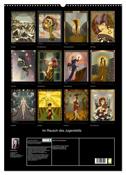 "Im Rausch des Jugendstils" ist eine Zusammenstellung von Grafiken, die stark von der Kunstbewegung des Art Nouveau inspiriert wurde. (Monatskalen...