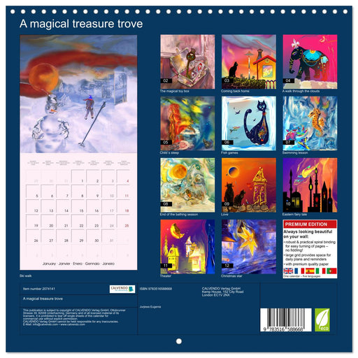 A calendar with enchanting, artistic, colorful illustrations and imaginative monthly paintings for young and old, to be taken away into exciting a...