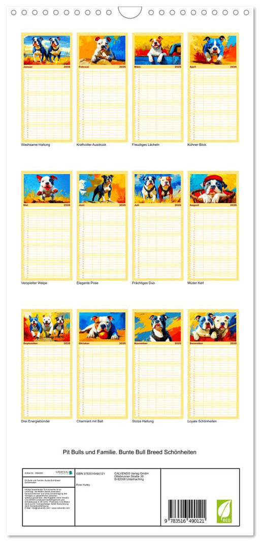 View full detailsPit Bulls und Familie. Bunte Bull Breed Schönheiten (CALVENDO Familienplaner 2026)