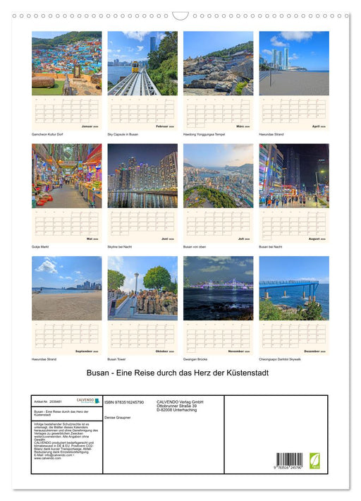 Ein Kalender über Busan zeigt atemberaubende Küstenlandschaften, moderne Architektur und die kulturelle Vielfalt dieser lebendigen südkoreanischen...