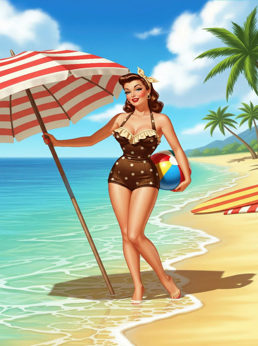 Holen Sie sich den unwiderstehlichen Charme der goldenen 50er nach Hause mit dieser atemberaubenden Pin-up-Illustration! Betrachten Sie unsere b...