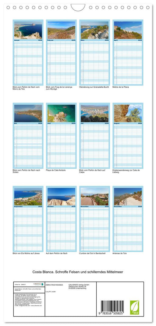 View full detailsCosta Blanca. Schroffe Felsen und schillerndes Mittelmeer (CALVENDO Familienplaner 2026)