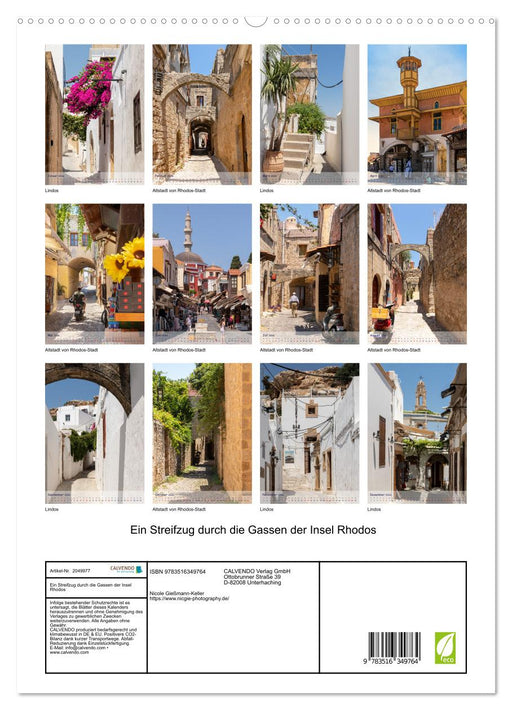 Fotografien von Gassen in den Altstädten von Rhodos-Stadt und Lindos (Monatskalender, 14 Seiten) Rhodos ist die viertgrößte Mittelmeerinsel und ei...