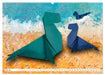 Origami, die Japanische Kunst des Papierfaltens, wird immer beliebter bei Jung und Alt. Ausgehend von einem quadratischen Blatt Papier sind bezaubernde Tiere entstanden, die in farbenfrohen Collagen eingebettet wurden.