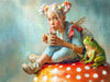Auf dem Fliegenpilz sitzend mit Freund Frosch