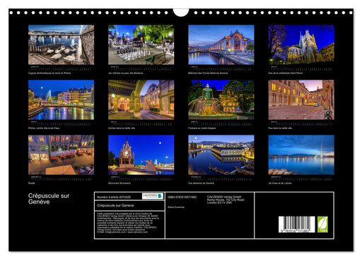 Genève magnifiée grâce aux couleurs intenses de l'heure bleue... Laissez-vous enchanter ! (Calendrier mensuel, 14 Pages) Genève, ville internation...