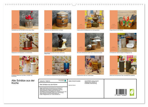Tauchen Sie ein in eine vergangene Welt mit einer Sammlung von Küchenutensilien. (Monatskalender, 14 Seiten) Erleben Sie ein visuelles Fest mit un...