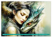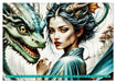 Magische Verbindung von Drachen und Frau, mit KI erstellt. (Monatskalender, 14 Seiten)
