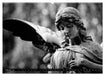 Juli: Engelsstatue mit zarten Schwingen zeigt in den Himmel