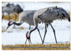 Februar: Kranichpaar beim Fressen auf schneebedecktem Rastplatz