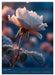 Januar: Weiße Rose mit Frost im Wintermorgen
