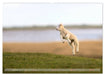Die wilden Sprünge wurden auf dem Deich in Westerhever, Nordfriesland aufgenommen.