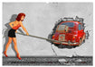 Street-Art mit Illusionen auf der Wand, vor der Wand und für die Wand. Sexy Frauen im Retro Style der 50er und 60er Jahre und vielen kultigen Oldtimern.