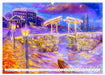 Februar: Caféterrasse bei Nacht mit Wohnhaus
