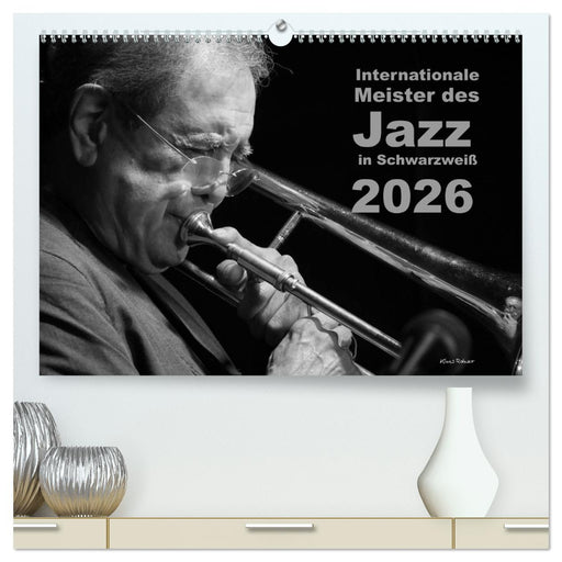 Internationale Meister des Jazz in Schwarzweiß (CALVENDO Premium Wandkalender 2026)