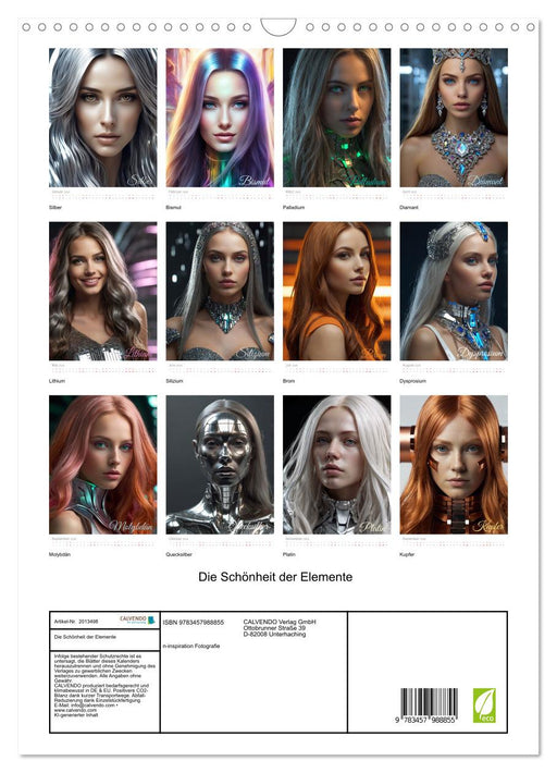Die Schönheit der Elemente - Elemente/Metalle aus dem Periodensystem in Darstellung von weiblichen Portraits (Monatskalender, 14 Seiten) Das Perio...