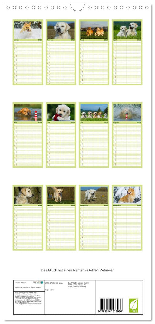 View full detailsDas Glück hat einen Namen - Golden Retriever (CALVENDO Familienplaner 2026)