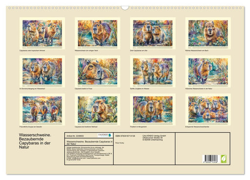 Schöne Aquarellbilder von Wasserschweinen in harmonischer Natur (Monatskalender, 14 Seiten) Dieser Kalender widmet sich den friedlichen und belieb...