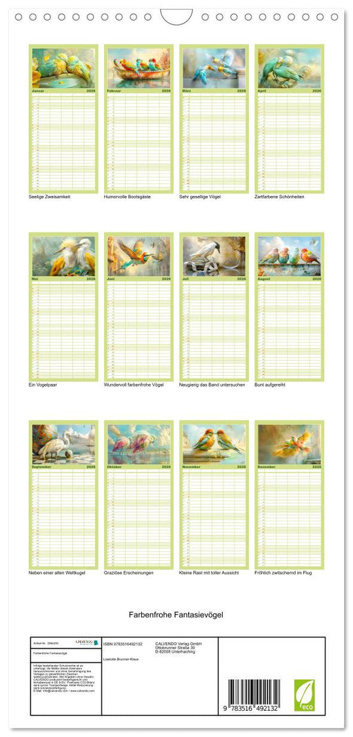 View full detailsFarbenfrohe Fantasievögel (CALVENDO Familienplaner 2026)