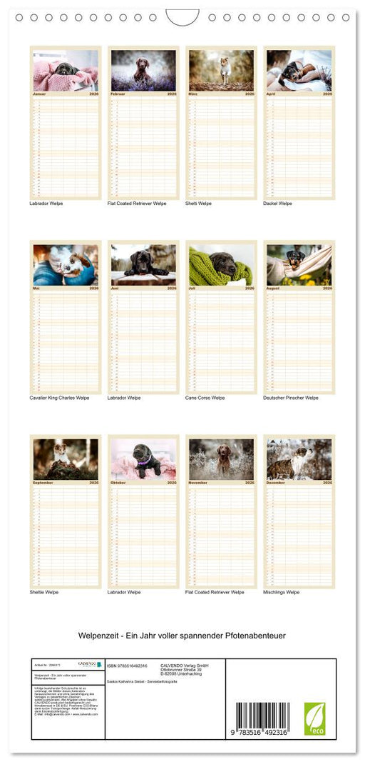 View full detailsWelpenzeit - Ein Jahr voller spannender Pfotenabenteuer (CALVENDO Familienplaner 2026)