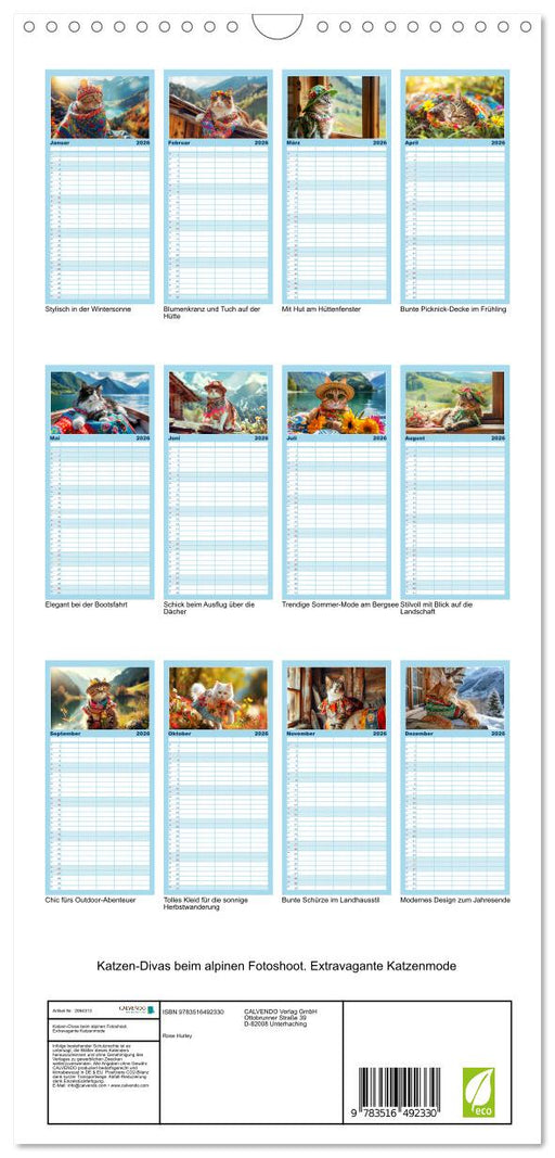View full detailsKatzen-Divas beim alpinen Fotoshoot. Extravagante Katzenmode (CALVENDO Familienplaner 2026)