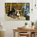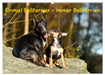 Februar: Zwei Bullterrier sitzen auf einem Stein