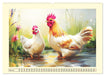 Stimmungsvolle Bilder von Hühnern und Hähnen – inmitten von Blumen, Schnee und Natur – im zeitlosen Stil der klassischen Ölmalerei (Monatskalender, 14 Seiten)