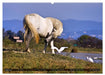 November: Herde weißer Camargue-Pferde im Flachwasser