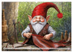 April: Ein Wichtel zeigt stolz seine Fliegenpilzzucht