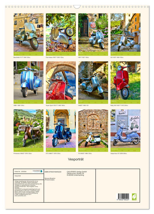 Eine faszinierende Reise in der Evolution der Vespa. (Monatskalender, 14 Seiten) Einige Porträts der Dame auf zwei Rädern, in welchen man die Esse...