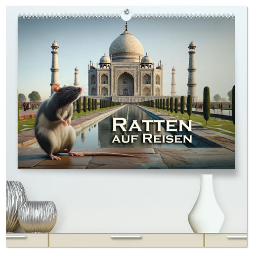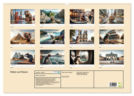 Humorvoll gestaltete Ratten in berühmten Reisedestinationen (Monatskalender, 14 Seiten) Jedes durch künstliche Intelligenz erzeugte Bild zeigt ein...