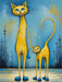 Humorvolles Bild von farbenfrohen Katzen, kunstvoll in Szene gesetzt