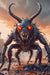 in gigantisches Mischwesen aus Mensch und Hirschkäfer erhebt sich bedrohlich aus einem Nebelmeer, sein ist Torso von einem glänzenden Chitinpanzer durchzogen, während mächtige Mandibeln aus einem verzerrten, grotesken Gesicht ragen. Die düstere Atmosphäre wird von fahlem Mondlicht und kriechenden Schatten verstärkt, die die abnorme Kreatur in eine albtraumhafte Szenerie tauchen.