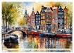 Die an die Nordsee grenzenden Niederlande sind bekannt für ihre flache Landschaft, die von grünen Wiesen, Windmühlen und Kanälen geprägt ist. Die Architektur in den Niederlanden ist vielfältig und reicht von traditionellen holländischen Fachwerkhäusern bis hin zu modernen Gebäuden. Die typischen holländischen Giebelhäuser mit ihren schmalen Fassaden und steilen Dächern prägen das Stadtbild vieler Orte. Die Niederlande sind auch für ihre zahlreichen Schlösser und Herrenhäuser bekannt, die inmitten malerischer Landschaften liegen. Insgesamt zeichnen sich die Niederlande durch eine harmonische Verbindung von Landschaft und Architektur aus, die das Land zu einem beliebten Reiseziel für Architektur- und Naturbegeisterte macht. Die schönsten Ziele wurden als Aquarelle durch die KI generiert.