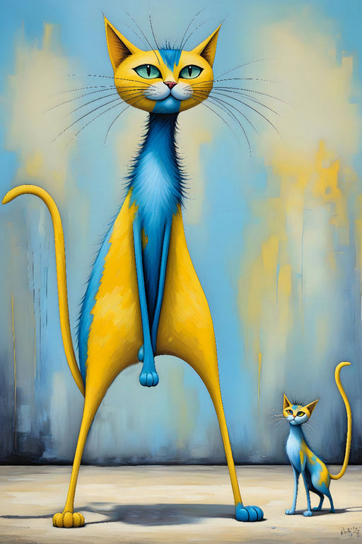 Humorvolles Bild von farbenfrohen Katzen, kunstvoll in Szene gesetzt Das originelle Leinwandbild und das unterhaltsame Puzzle aus einem Motiv des ...