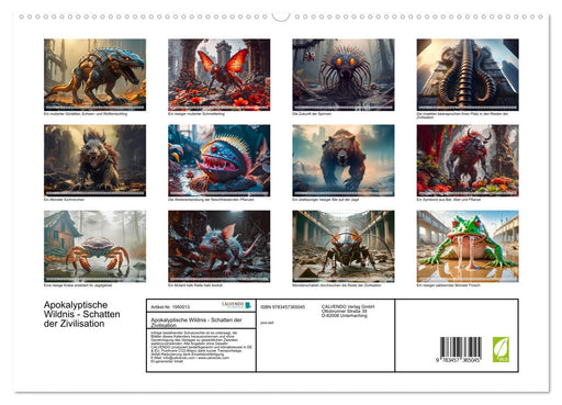 Der Kalender zeigt eine apokalyptische Welt, in der mutierte Tiere und Pflanzen die zerstörten Lebensräume der ausgestorbenen Menschheit zurückero...