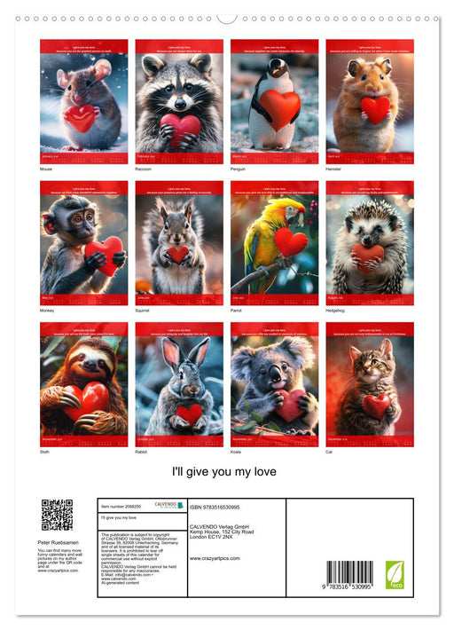 Funny animals show you the love with a heart and cool phrases (Monthly calendar, 14 pages) Unveil a year of affection with our exclusive 'I'll Giv...
