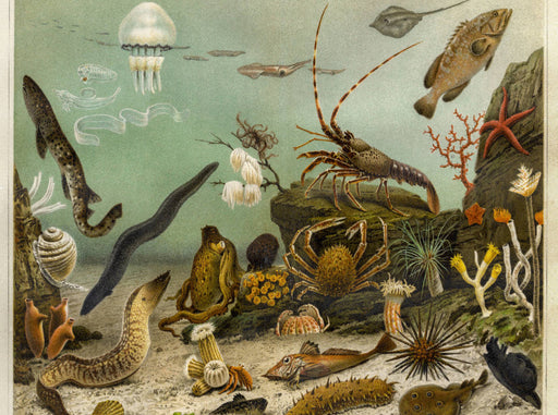 Kunstbeilage in Meyer's Großes Konversationslexikon, 6. Auflage 1905-1909 Ein Motiv aus dem Kalender "Farbenprächtige Fauna. Fische, Vögel, Schmet...