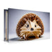 Das Bild zeigt einen niedlichen Igel als Origami-Figur, liebevoll aus braunem Papier gefaltet, mit kleinen, spitzen Stacheln, die seinen runden Körper und die neugierige Haltung betonen. Der Hintergrund ist in einem schlichten Grau gehalten, was die Details der Origami-Figur noch stärker in den Mittelpunkt rückt und die niedliche Ausstrahlung des Igels zur Geltung bringt.