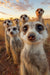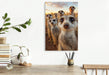 Premium Textil-Leinwand Erdmännchen Gruppe in der Savanne beim Sonnenuntergang